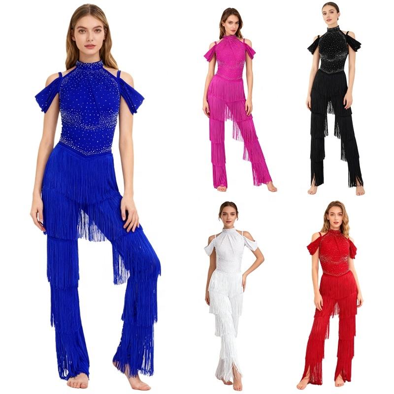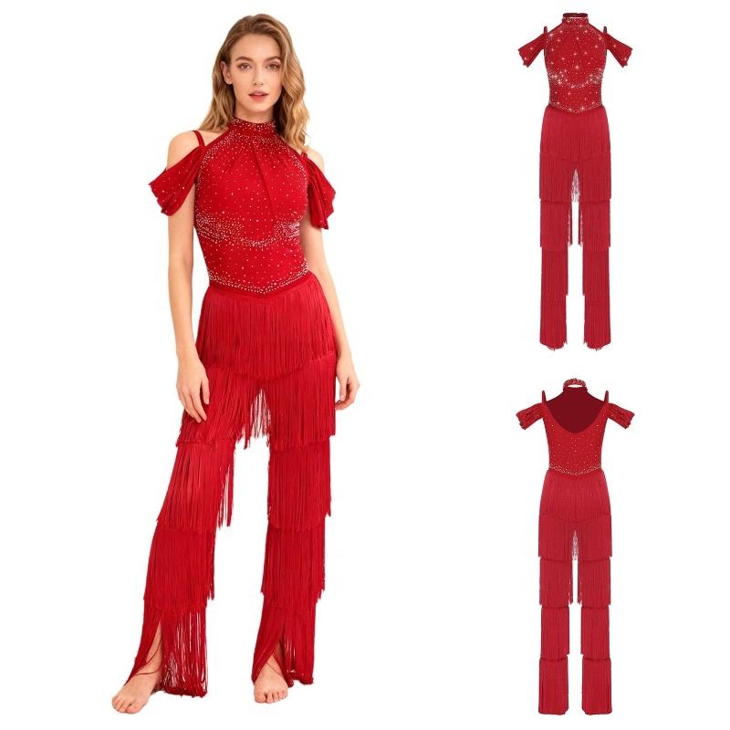 ชุดจั๊มสูทเต้นรำลาตินแซมบาสำหรับผู้หญิง สำหรับงานเต้นรำรุมบ้า บอลรูม งานปาร์ตี้ ชุดแสดงเต้นลาตินแซมบา