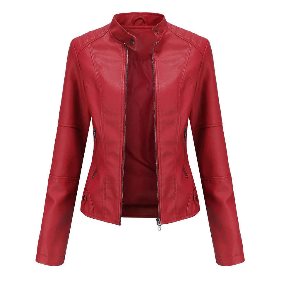 แจ็กเก็ตหนังสำหรับผู้หญิงมีซิปด้านหน้าแขนยาวเสื้อแจ๊กเก็ตแฟชั่นสำหรับใส่ทำงานฤดูใบไม้ร่วงลำลองและสไตล์สตรีทประจำวันของแท้