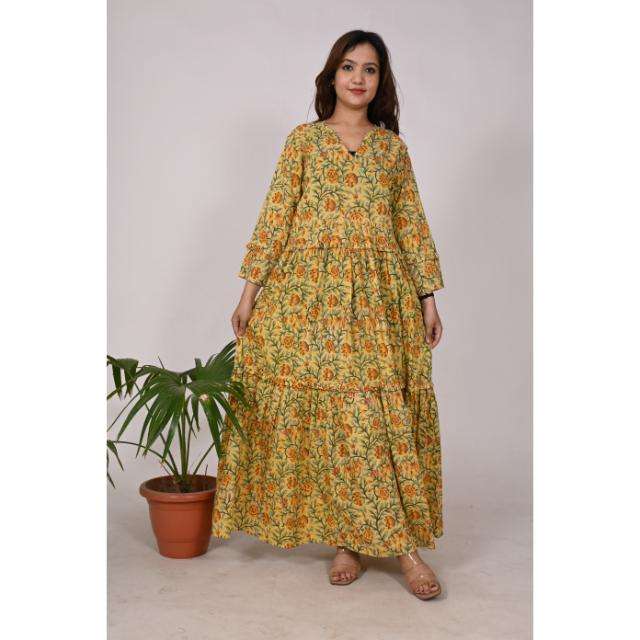 เดรสผู้หญิงพิมพ์ลายผ้าฝ้ายบล็อก