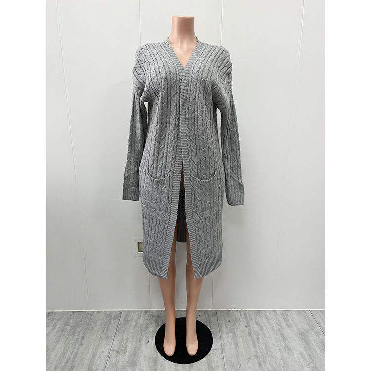 เสื้อคลุมคาร์ดิแกนยาวสำหรับผู้หญิง แฟชั่นลำลอง ไซส์ XL ระบายอากาศได้ดี กันน้ำ ผ้าถักย้อมสี มีฮู้ดถอดได้ ผ้าแคชเมียร์