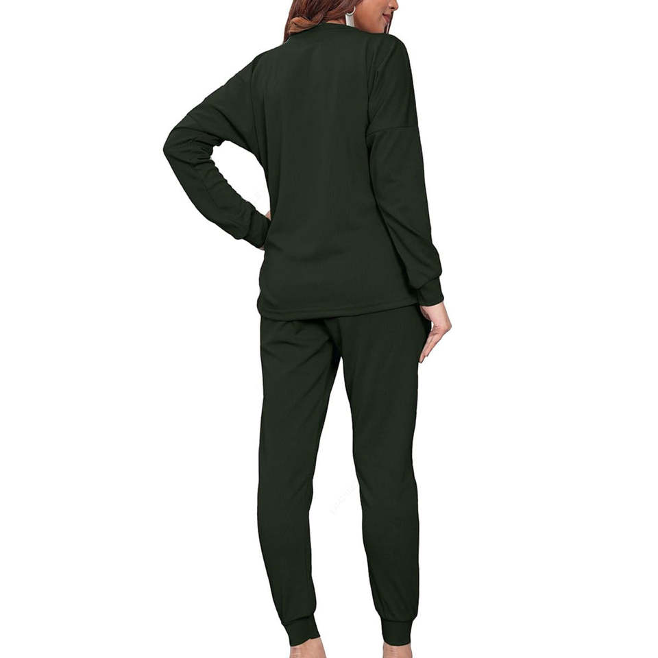ชุดเสื้อแขนยาวและกางเกงจ็อกเกอร์สำหรับผู้หญิง ชุดลำลองสองชิ้นสำหรับใส่ ผ้าเนื้อนุ่ม ทรงปกติ ชุดลำลองประจำวัน สีพื้น