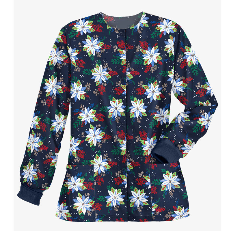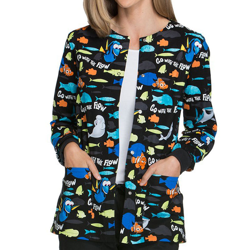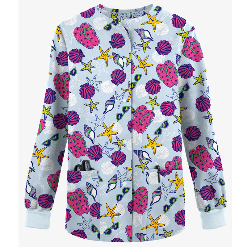 เสื้อแจ็คเก็ตสครับพิมพ์ลายสำหรับแพทย์หญิง พยาบาล ผ้าสแปนเด็กซ์ ทรงจ็อกเกอร์ สำหรับทันตแพทย์ พยาบาล และชุดยูนิฟอร์มโรงพยาบาลสำหรับผู้หญิง