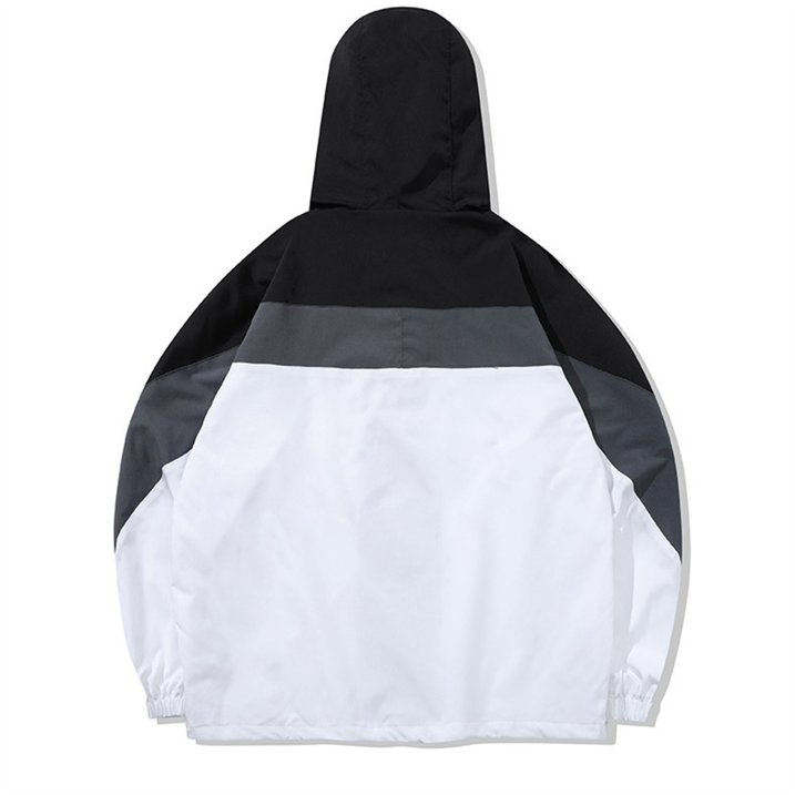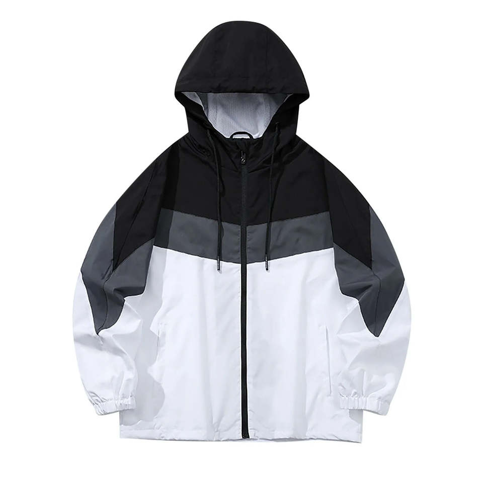 เสื้อแจ็คเก็ตบอมเบอร์กันลมสำหรับผู้หญิงและผู้ชาย น้ำหนักเบา เคลือบผิว โพลีเอสเตอร์ ทรงทางการ สีบล็อก ซิป สีดำ สีขาว ไซส์พลัส สำหรับฤดูใบไม้ผลิ