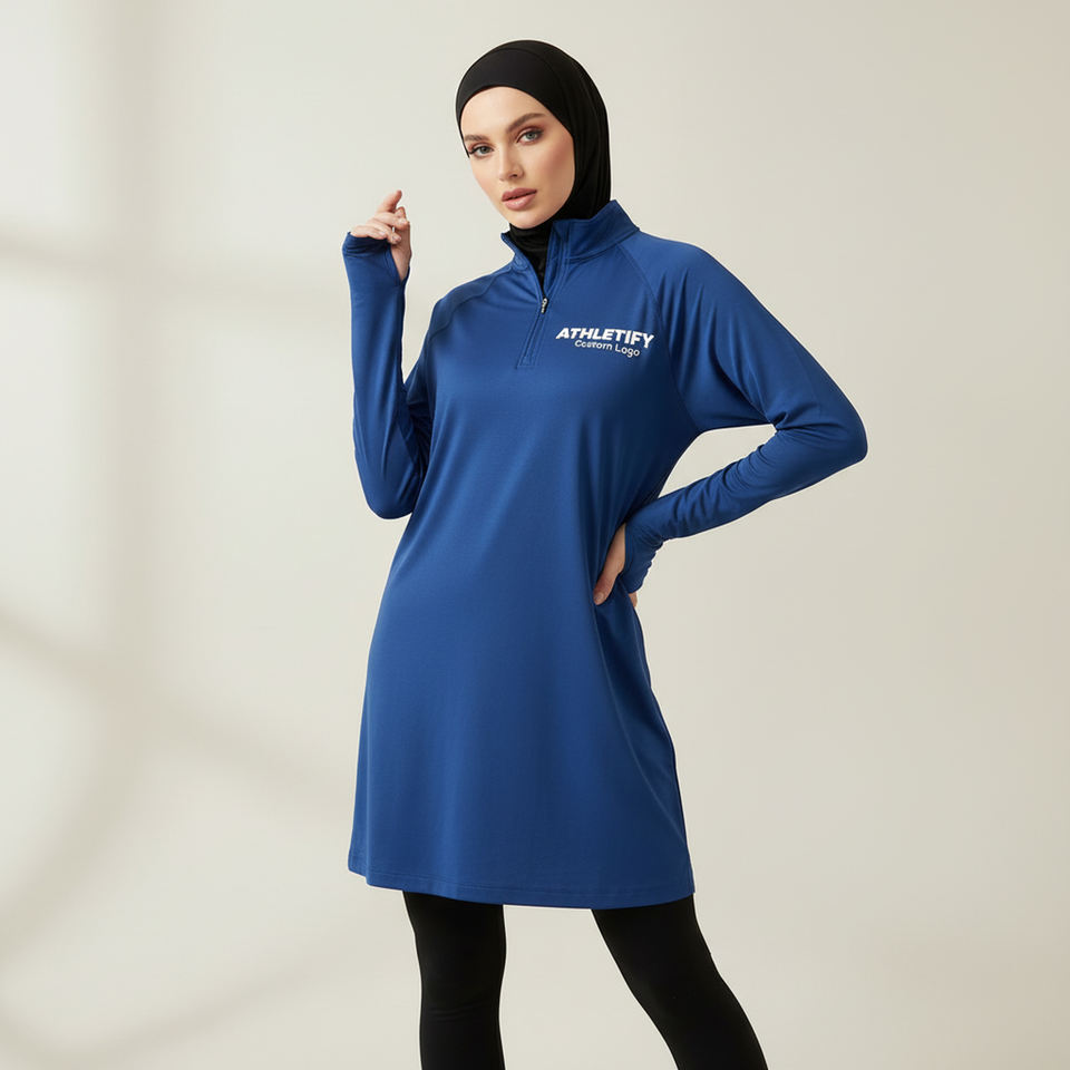ชื่อสินค้า:เสื้อเชิ้ตยาวผู้หญิงมุสลิม มีซิปครึ่งตัว