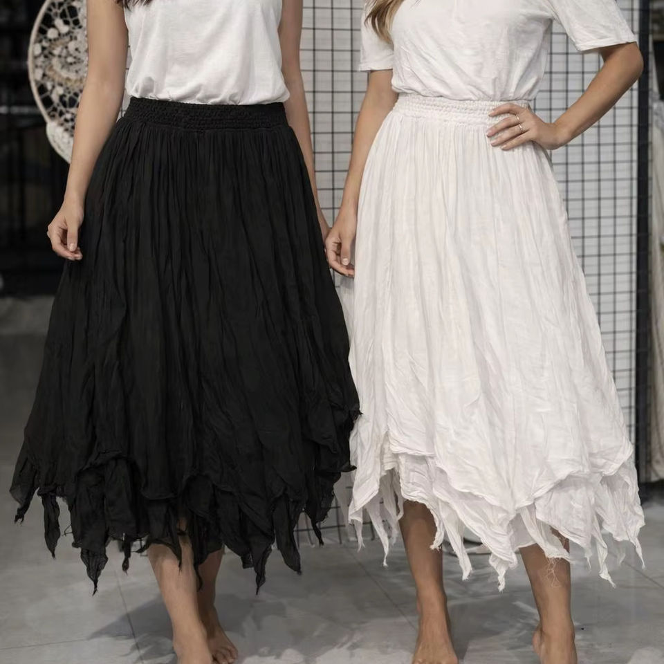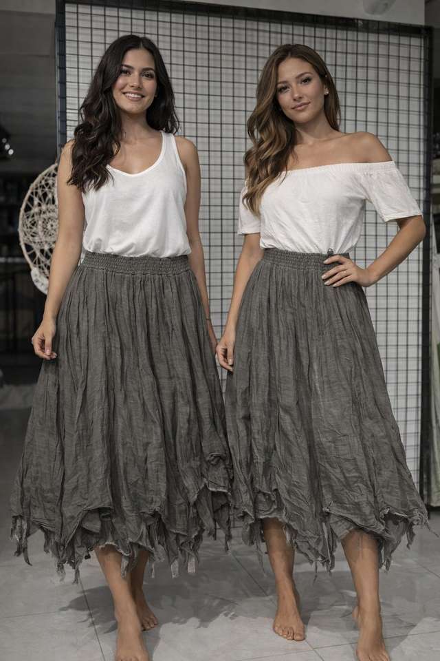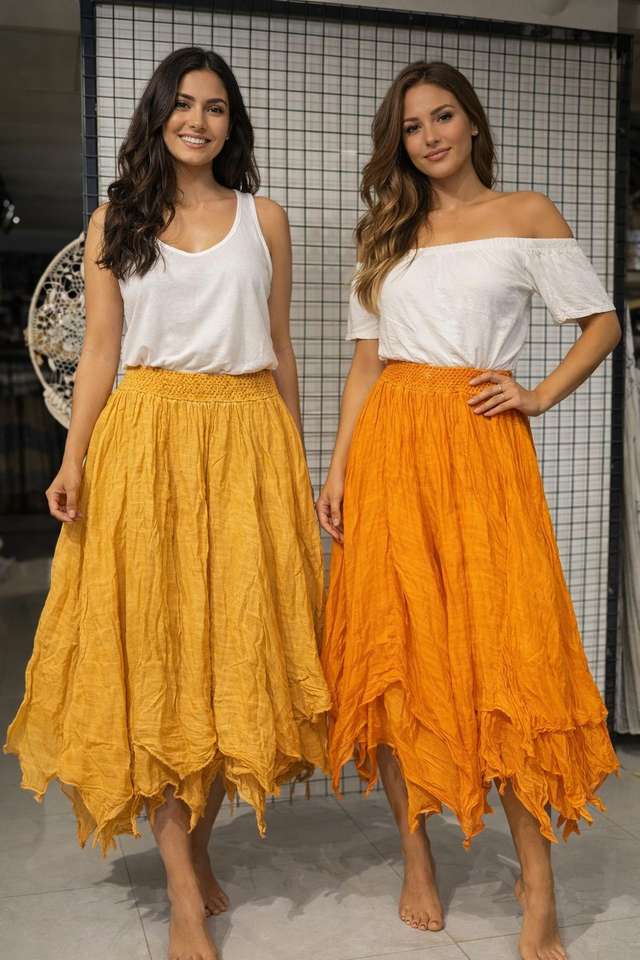 กระโปรงมิดิผ้ามัสลินสำหรับผู้หญิง | ผ้าเนื้อนุ่มสีพื้นสำหรับฤดูร้อน | น้ำหนักเบา ระบายอากาศได้ดี | เอวยางยืด | สไตล์หรูหรา