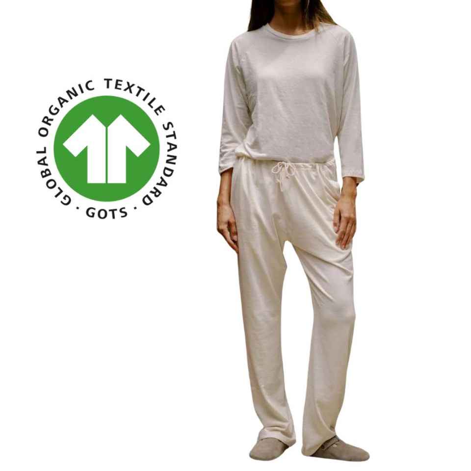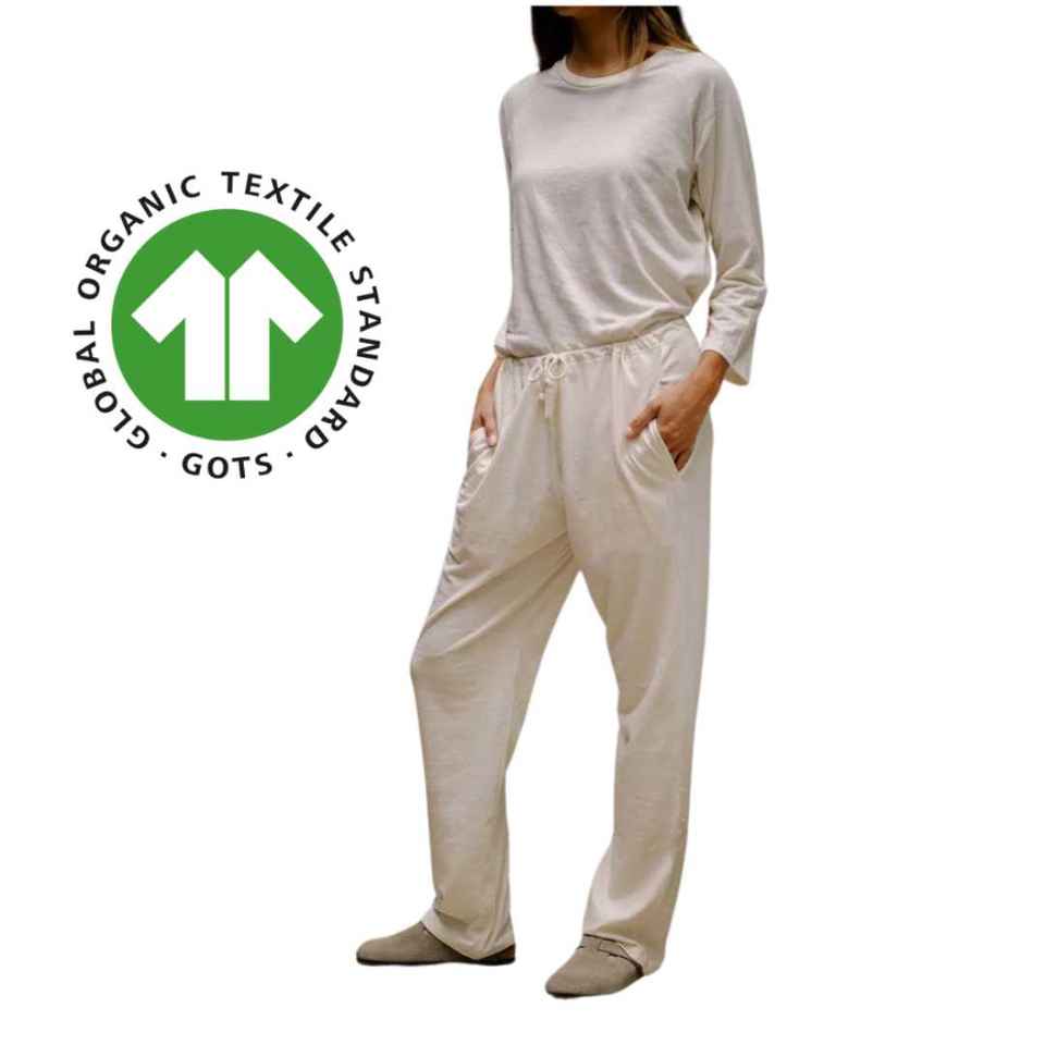 กางเกงเลานจ์ผ้าฝ้ายออแกนิกของผู้หญิงเสื้อเจอร์ซีย์5.4ออนซ์ใส่สบายปรับได้เอวและตรง
