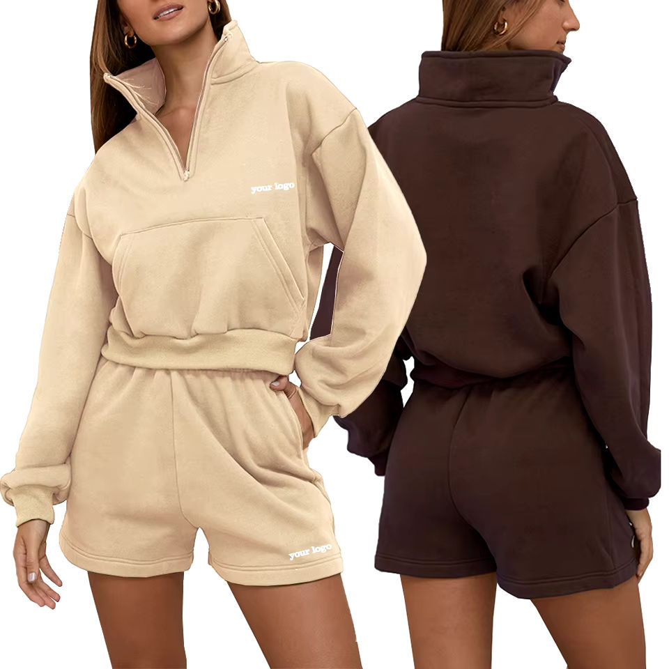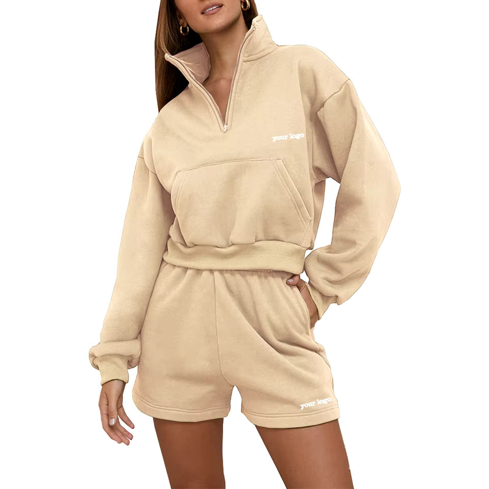 ชุดกางเกงขาสั้น2ชิ้นสำหรับผู้หญิงชุดวิ่งสีเหนือเข่ามีฮู้ดและกางเกงขาสั้นสำหรับผู้หญิง
