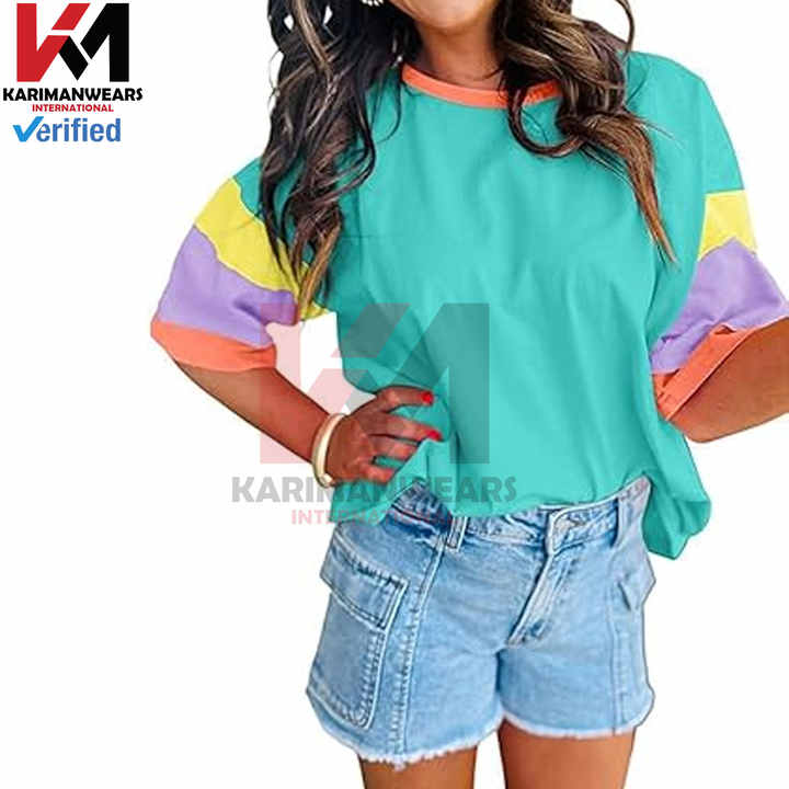 เสื้อยืดบล็อกสีโอเวอร์ไซส์สำหรับผู้หญิงเสื้อยืดลำลองทรงหลวมใส่ฤดูร้อนออกแบบให้เข้ากับเสื้อคอกลมมีไหล่