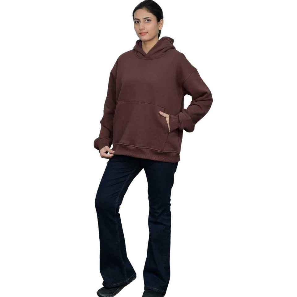 เสื้อสเวตเตอร์แบบสวมหัวแขนยาวทรงโอเวอร์ไซส์สำหรับผู้หญิงสีน้ำตาลช็อกโกแลตใส่สบายเสื้อผ้าแนวสตรีทหรือชุดอยู่บ้าน
