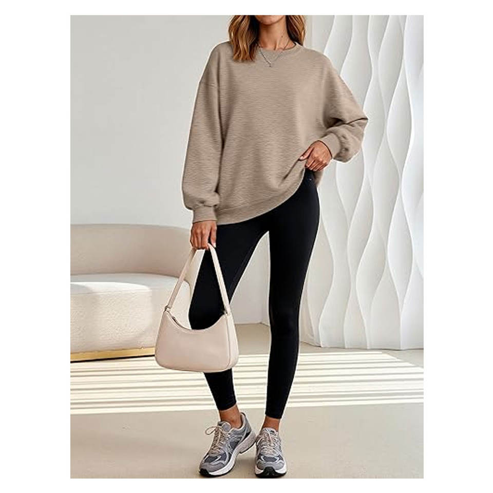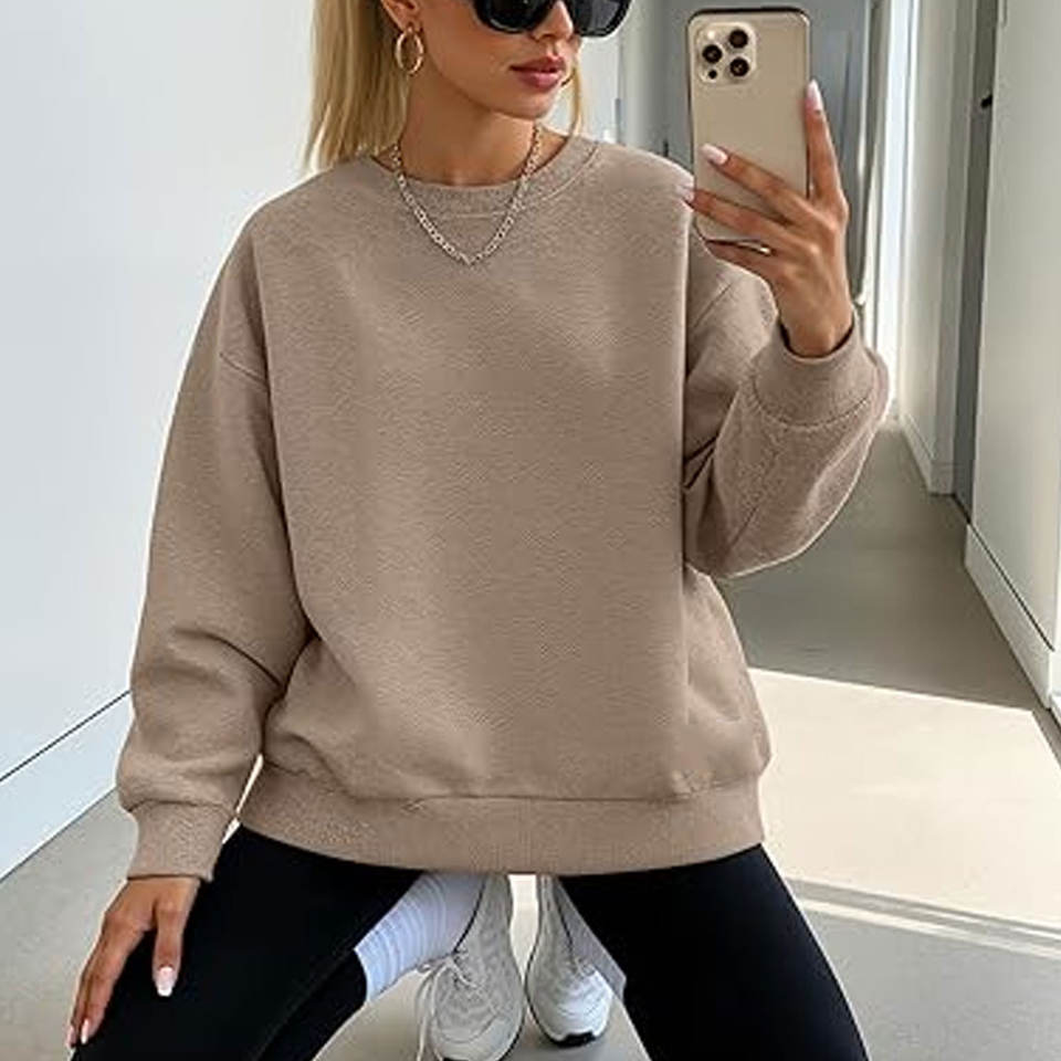เสื้อสเวตเตอร์โอเวอร์ไซส์สำหรับผู้หญิง เสื้อสเวตเตอร์คอกลมแขนยาวสำหรับผู้หญิง เสื้อสเวตเตอร์ฤดูใบไม้ร่วงฤดูหนาว เสื้อลำลอง สวมใส่สบาย หลวมๆ