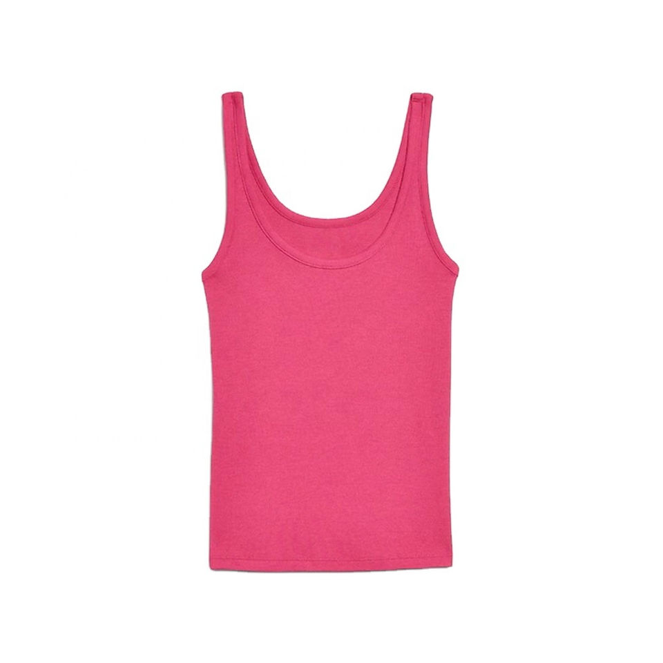 เสื้อกล้ามผู้หญิงสีชมพู ทรงเข้ารูป ผ้าฝ้ายผสมสแปนเด็กซ์ เสื้อกั๊กแบบลำลองและออกกำลังกาย เสื้อกล้ามสำหรับสาวๆ รับผลิตแบบ OEM แบรนด์ส่วนตัว