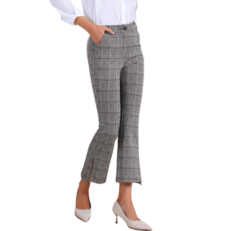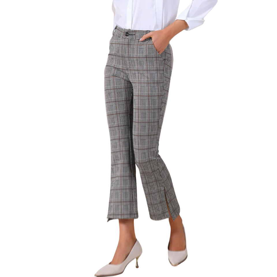 กางเกงสูทครอปเอวสูงลายสก็อตผ่าข้างสำหรับผู้หญิง พร้อมบริการผลิตแบบ OEM ODM ขายส่ง