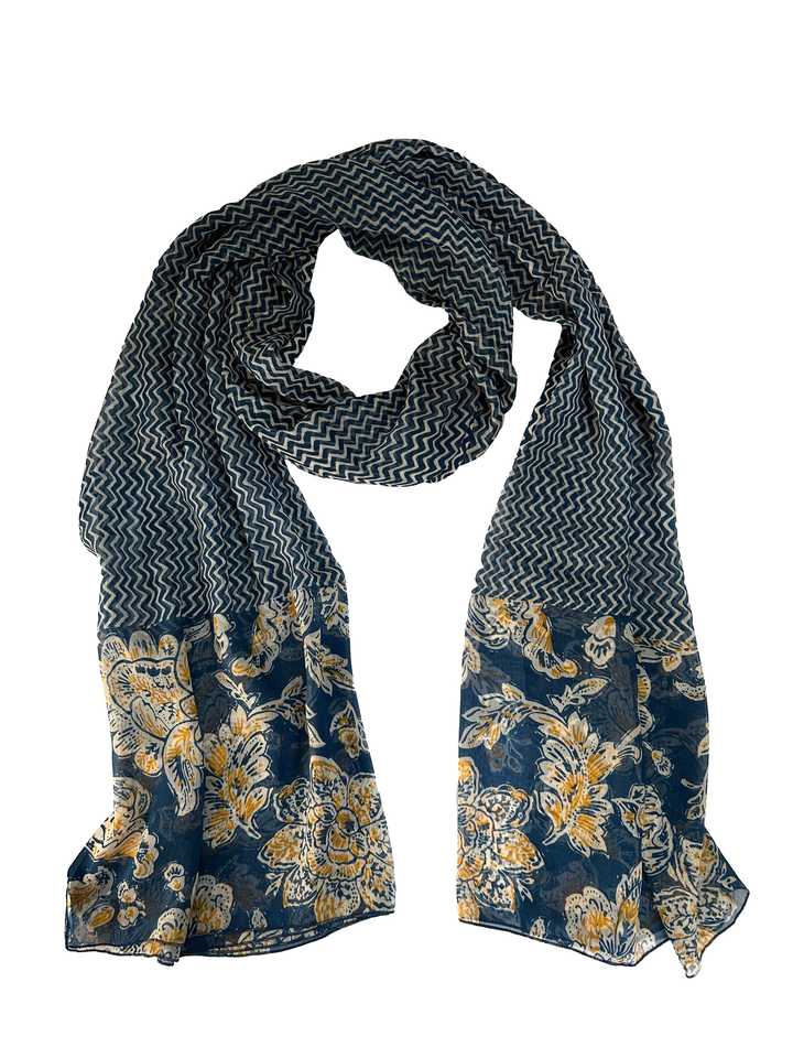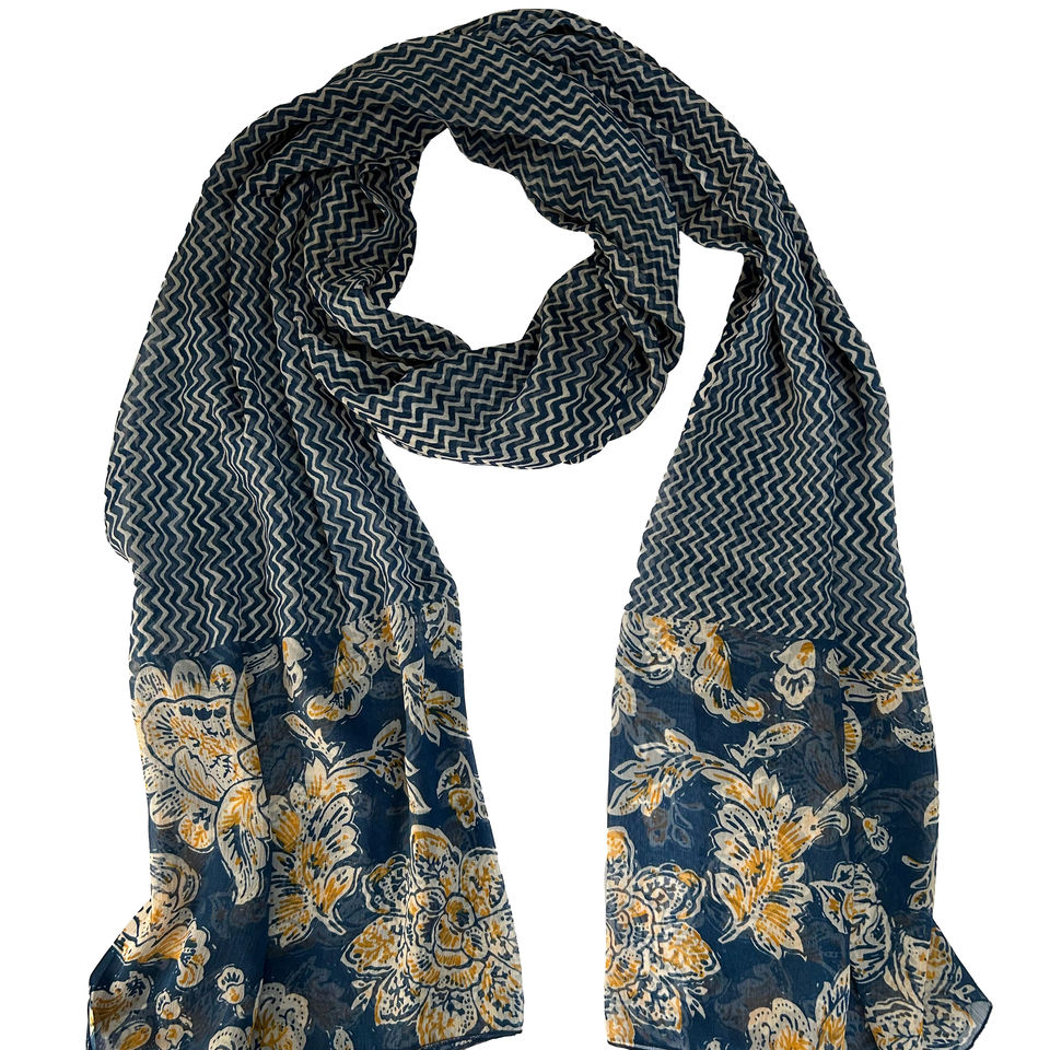 Women's 100% Cotton Blue Floral Print Dupatta Summer Lightweight Soft Ethnic Traditional Wear Elegant Stylish Fashion Accessory