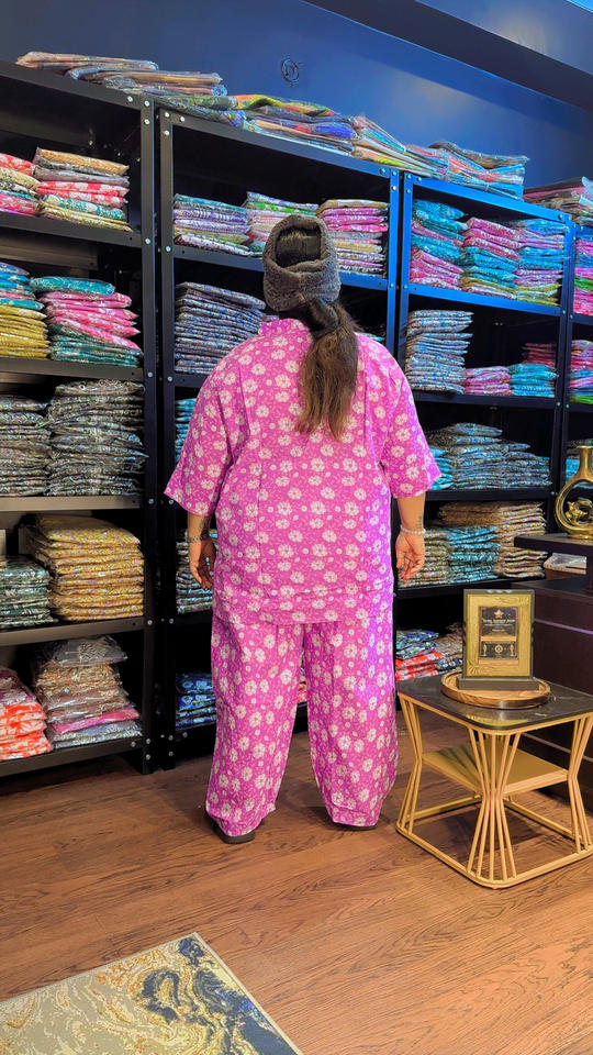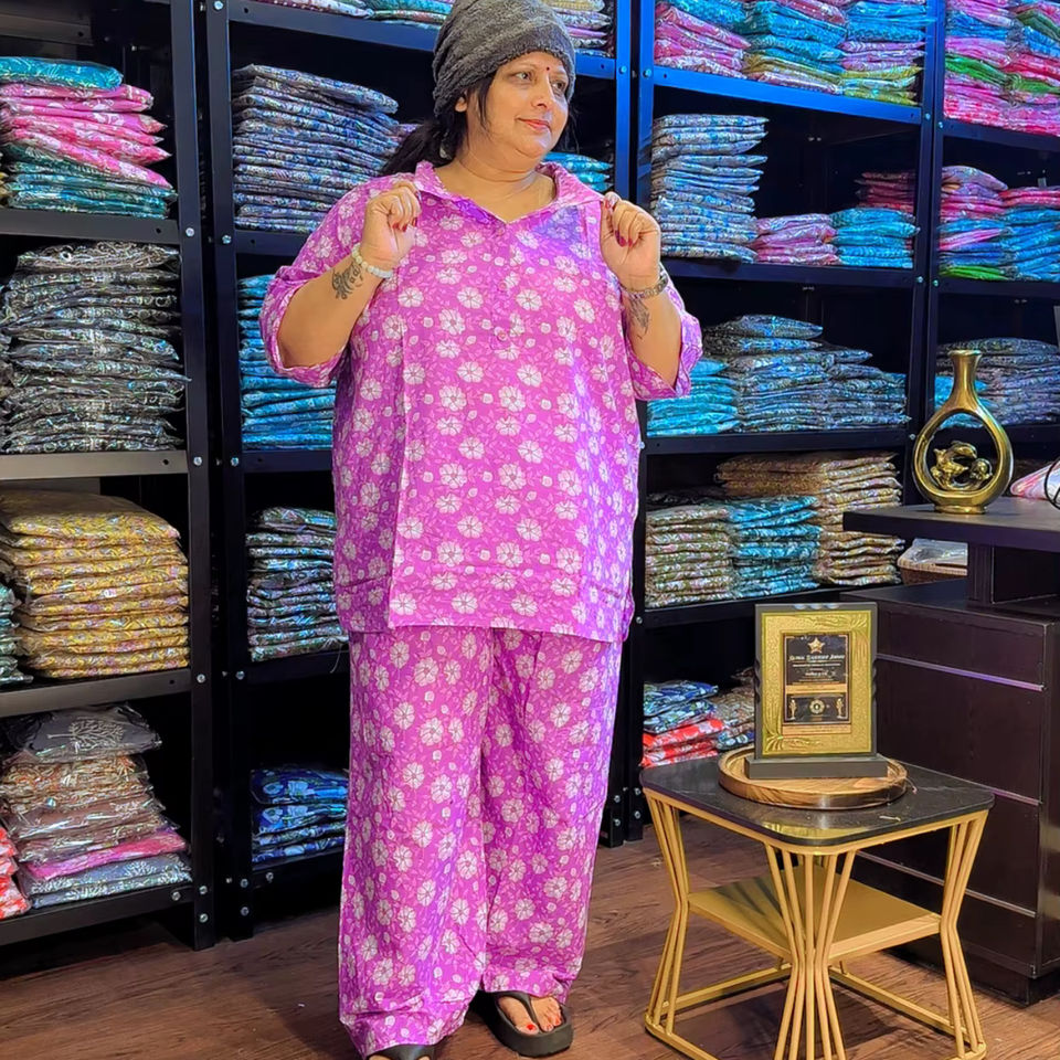 ชุดเซ็ตผ้าฝ้ายแท้พิมพ์ลายระบายอากาศสำหรับผู้หญิง | เสื้อครอปและกางเกงเหนือเข่า | กระเป๋าข้างเดียว | ไซส์ S-10XL