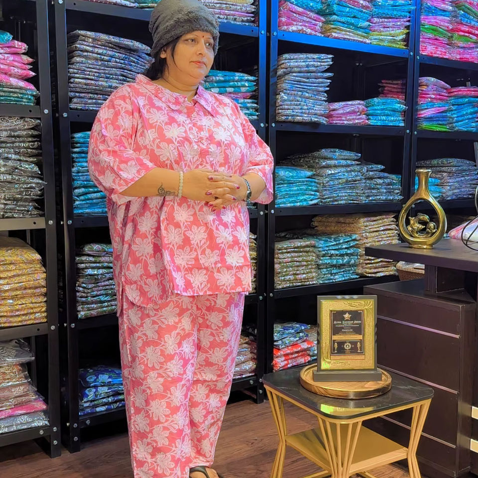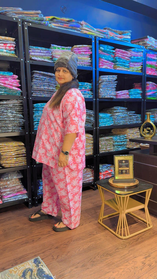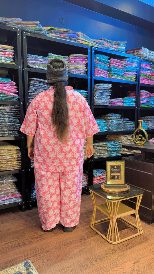 ชุดเซ็ตผ้าฝ้ายแท้พิมพ์ลายสำหรับสุภาพสตรีทำงาน | เสื้อคลุมเหนือเข่าและกางเกง | ระบายอากาศได้ดี | กระเป๋าข้างเดียว | ไซส์ S-10XL