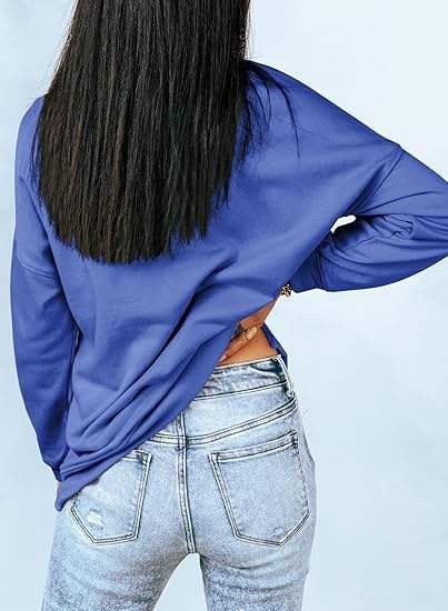 เสื้อสเวตเตอร์คอลูกเรือแบบลำลองสไตล์สตรีททรงหลวมสำหรับผู้หญิง