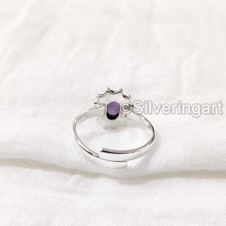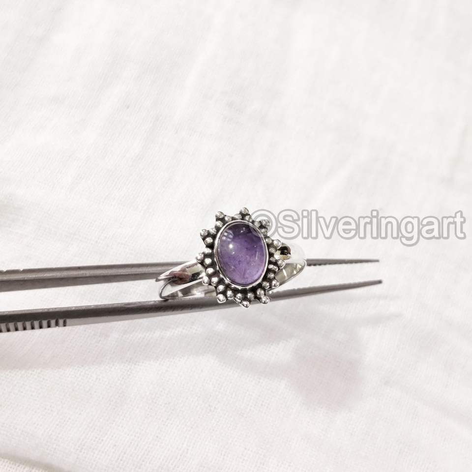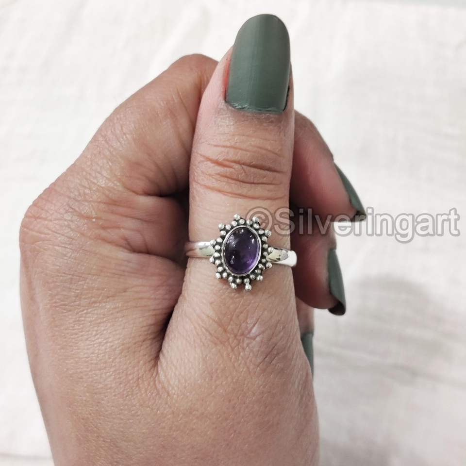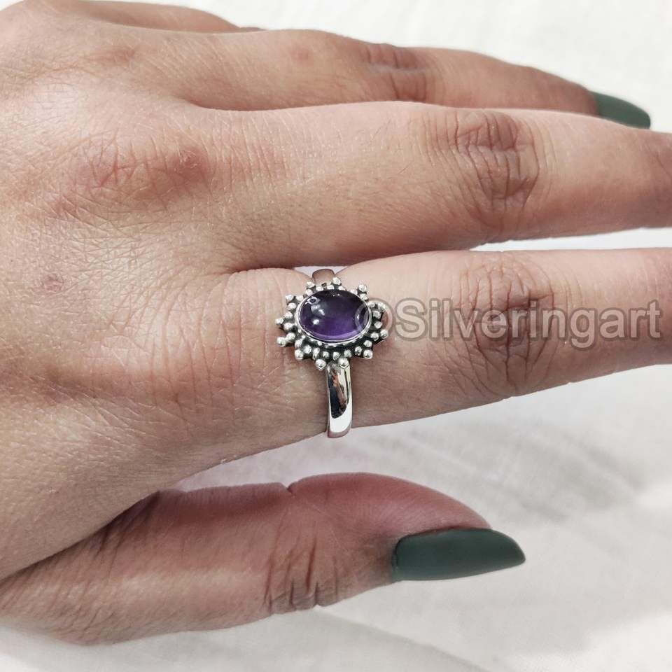 แหวนสตรีพลอยอเมทิสต์ธรรมชาติอัญมณีขนนกแหวนโบฮีเมียนสำหรับผู้หญิงเครื่องประดับแฮนด์เมดสำหรับงานแต่งงานแหวนเงินสเตอร์ลิง925