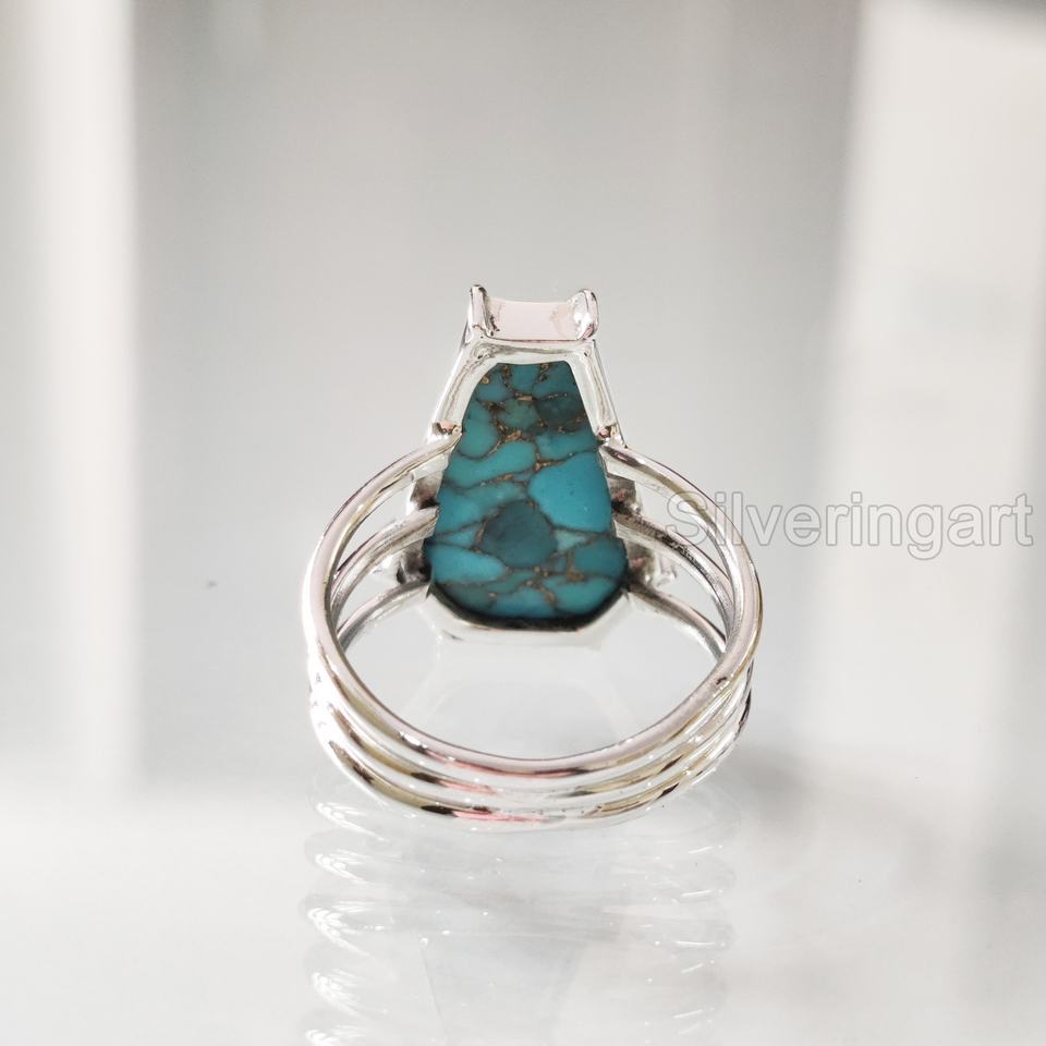 แหวนผู้หญิง แหวนเงินแท้ 925 ประดับพลอยเทอร์ควอยซ์สีน้ำเงินธรรมชาติ รูปทรงโลงศพ แหวนประจำเดือนธันวาคม ของขวัญคริสต์มาส ทำด้วยมือ