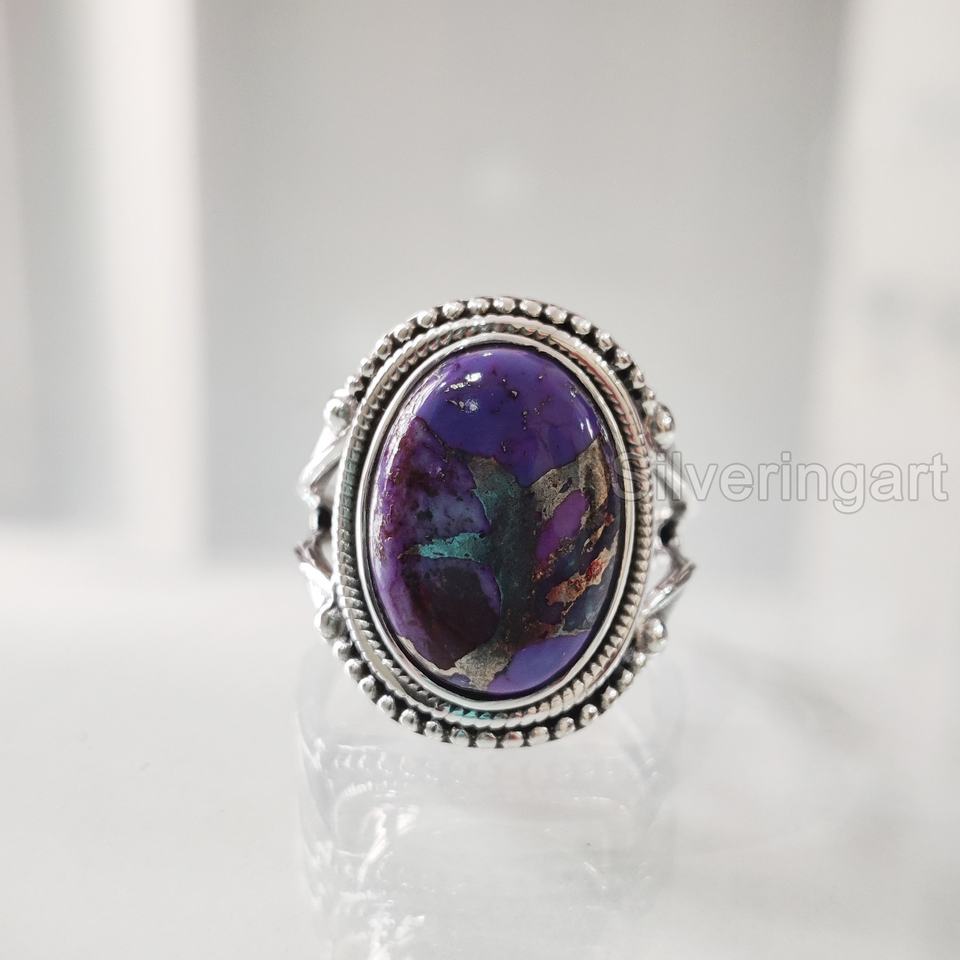 แหวนสตรีแหวนธรรมชาติสีม่วงทองแดงเทอร์ควอยซ์พลอย December หินโบฮีเมียนทำด้วยมือเครื่องประดับ925แหวนเงินสเตอร์ลิง