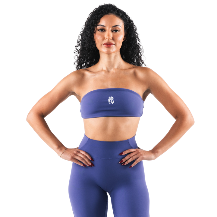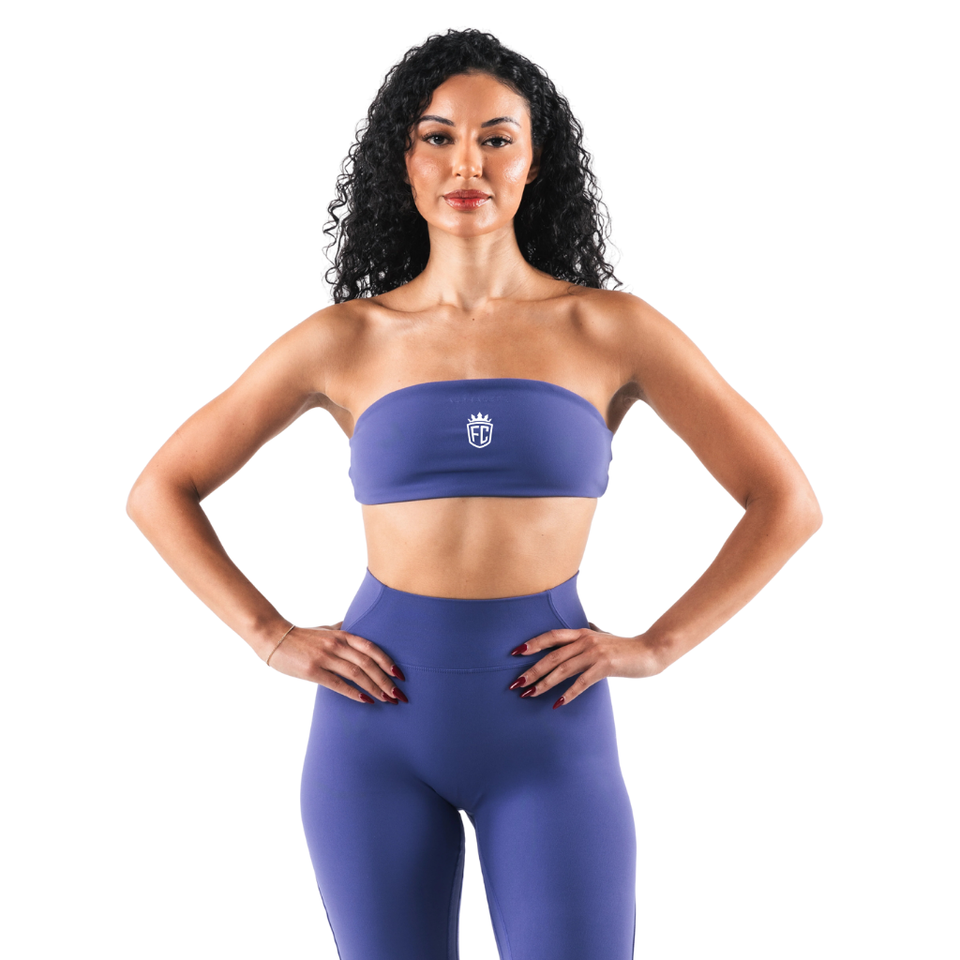 เสื้อชั้นในกีฬาไร้สายสำหรับผู้หญิง แบบ Bandeau สำหรับโยคะและฟิตเนส เนื้อผ้านุ่ม ยืดหยุ่น สวมใส่สบาย สี Arctic Sky ชุดเซ็ตเอวสูง