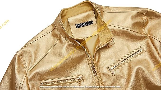 Moto แจ็คเก็ตหนังเทียมเงาวาวสำหรับผู้หญิงแจ็คเก็ตนักขี่จักรยานหนังสีทองสวมใส่สำหรับฤดูหนาว
