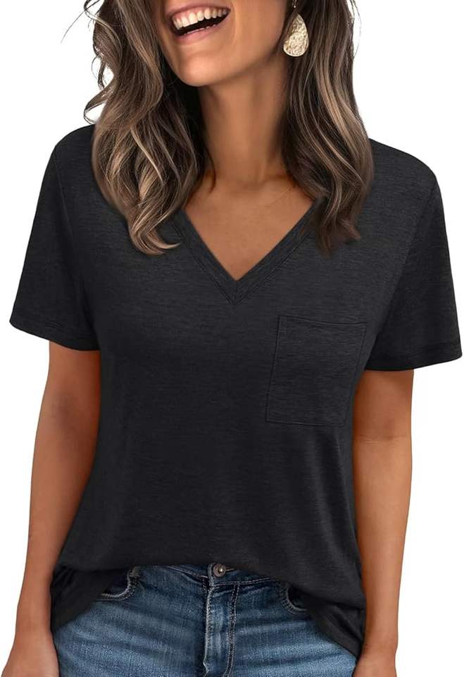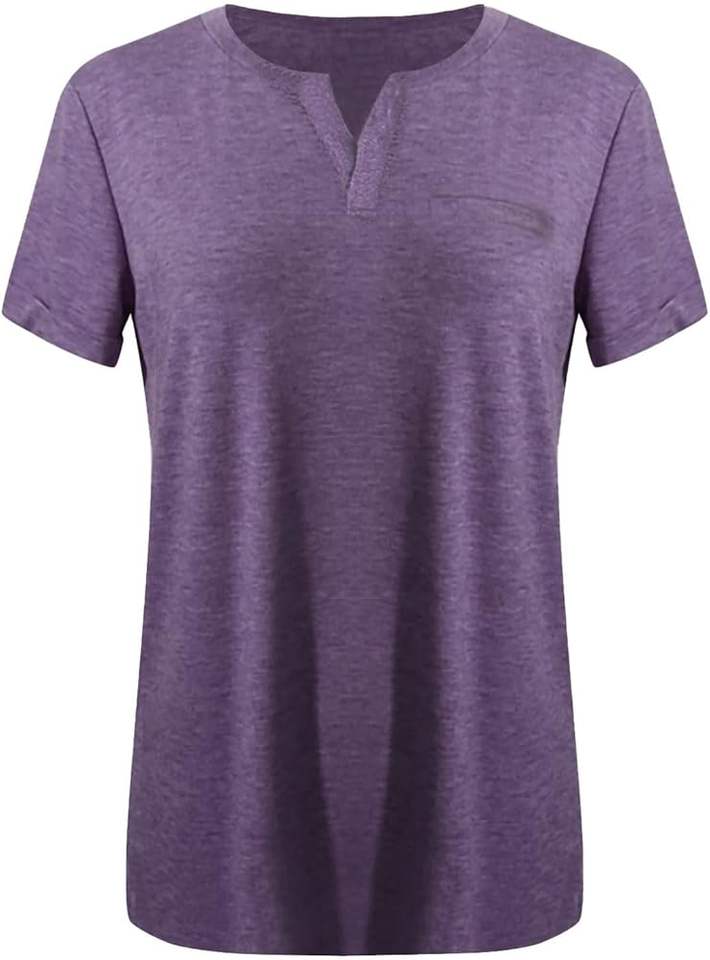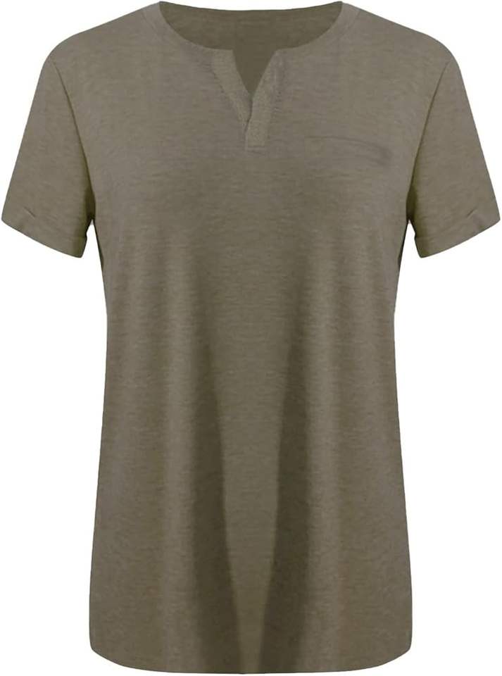 เสื้อยืดคอวีแขนสั้นผู้หญิงโทนสีมาการองทรงสลิมฟิตลำลองหลวมมีกระเป๋าแฟชั่นฤดูร้อนสไตล์คนเมือง