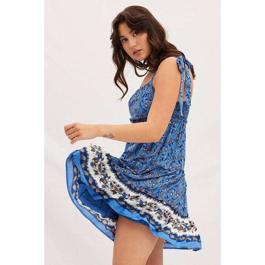 ชุดเดรสมินิเดรสสายเดี่ยวลายดอกไม้สไตล์โบโฮสำหรับผู้หญิง ชุดเดรสลำลองสำหรับฤดูร้อนและชายหาด