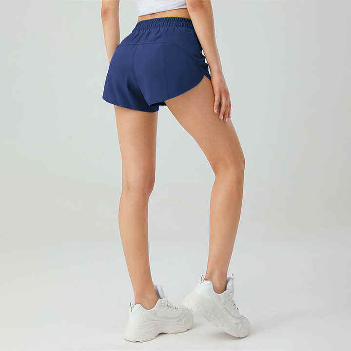 กางเกงกีฬาขาสั้นเอวสูงสำหรับสตรีชุดออกกำลังกายเล่นฟิตเนสโยคะวิ่งผลิตโลโก้ได้ตามต้องการ