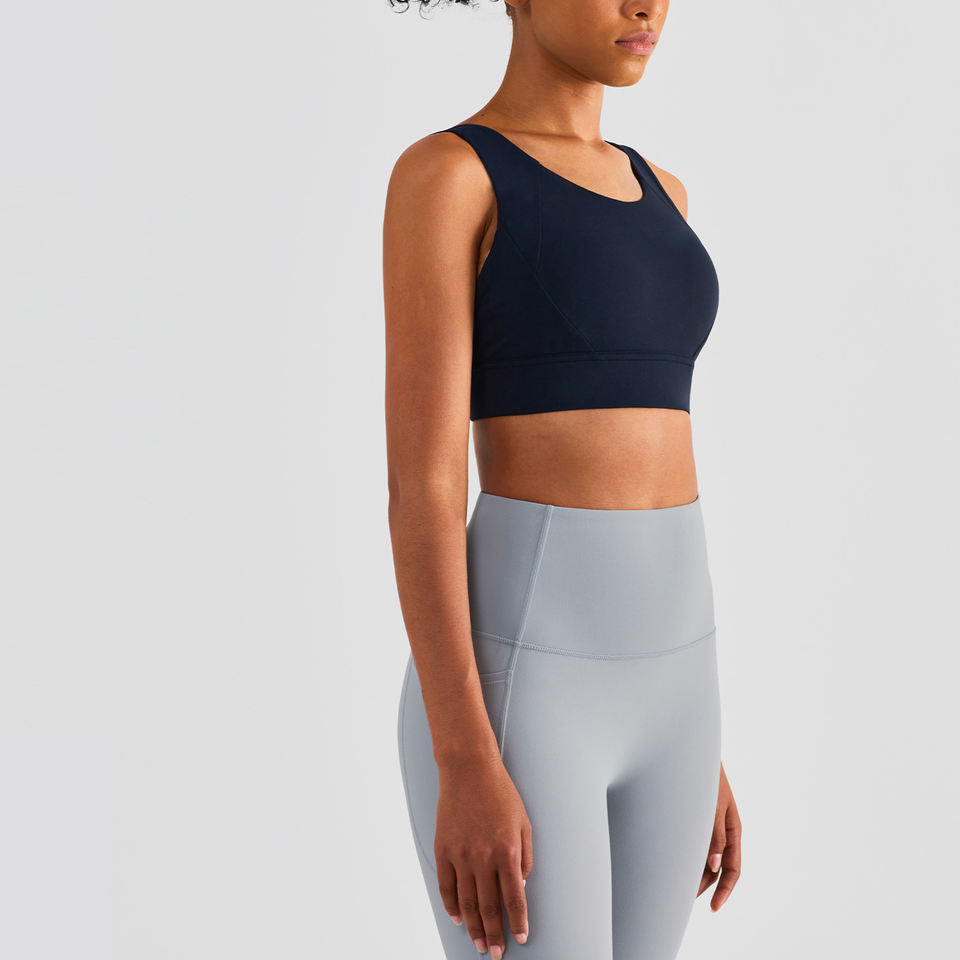 สปอร์ตบราสำหรับผู้หญิงที่ให้การรองรับระดับปานกลางถึงสูง กระชับพอดีตัว ควบคุมความชื้นได้ดี เหมาะสำหรับการฝึกซ้อม พิลาทิส และแอโรบิก