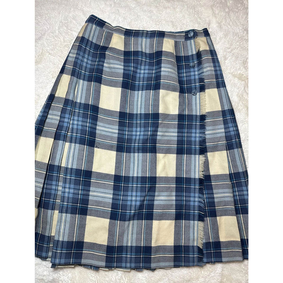 กระโปรงกิลท์ลายสก็อตสีน้ำเงินอ่อนสำหรับผู้หญิง ยี่ห้อ Stewart ผ้าขนสัตว์ 100% กระโปรงยาวปานกลางแบบพันรอบ ขายดี