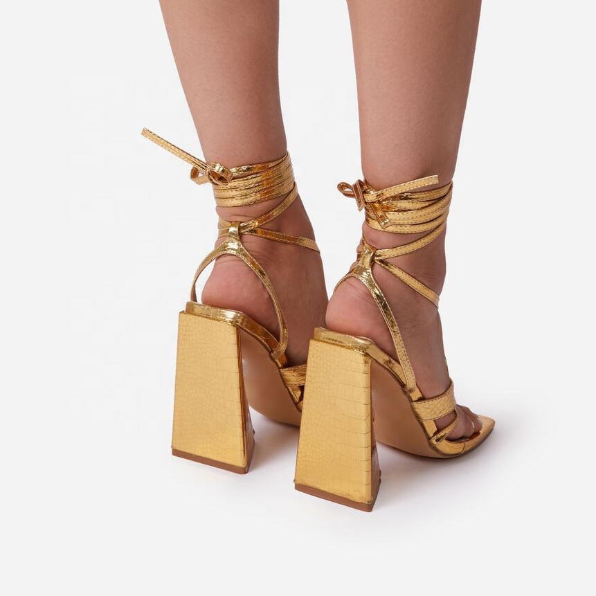รองเท้าแตะรัดส้นสำหรับสตรี,รองเท้าส้นสูงทรงสี่เหลี่ยมมีสายรัดข้อเท้าทำจาก PU