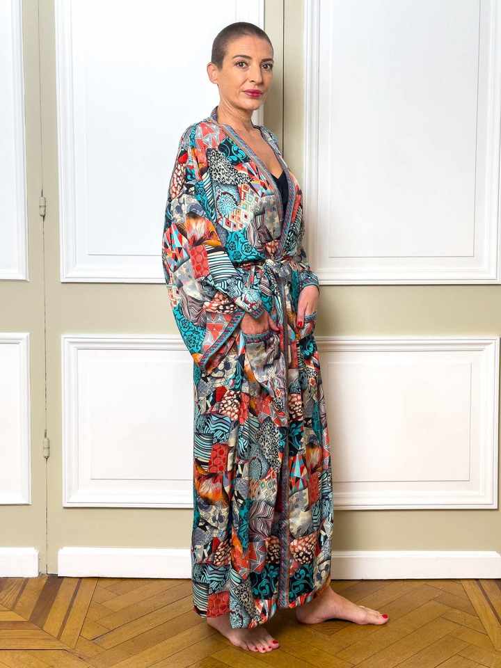 ชุดกิโมโนผ้าไหมโบโฮสำหรับผู้หญิงใส่ในฤดูร้อนชุดราตรียาวถึงพื้นชุดคลุมบิกินี่แฮนด์เมดของขวัญสำหรับเพื่อนเจ้าสาว