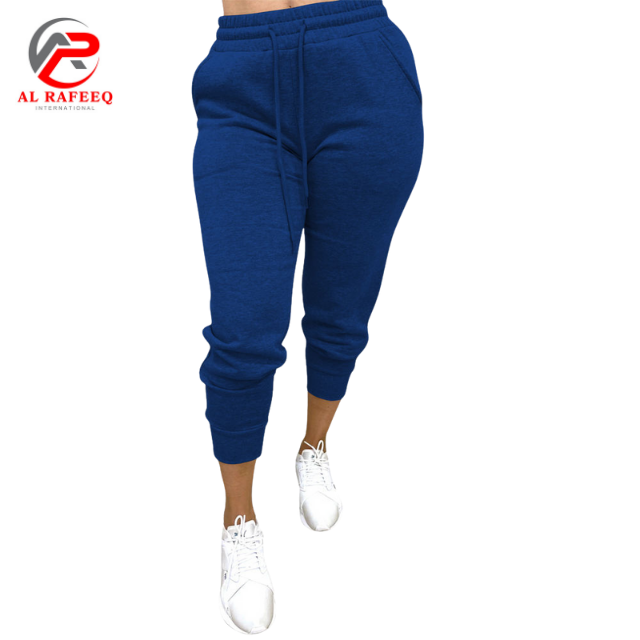 กางเกงขายาวทรงหลวมลำลองสำหรับผู้หญิงใส่ในฤดูร้อนกางเกงสเวตเตอร์สีพื้นผ้าฝ้าย100% มีบริการ OEM ระบายอากาศได้ดี