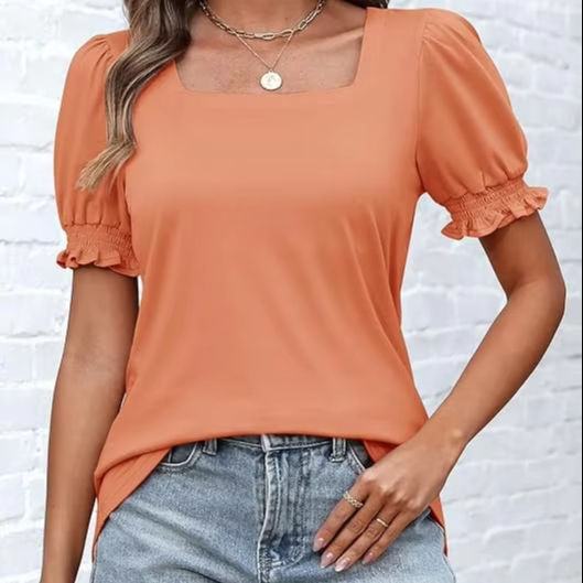 เสื้อยืดน่ารักแขนระบายลำลองสำหรับผู้หญิงชุดเดรสคอเหลี่ยมสำหรับฤดูร้อน