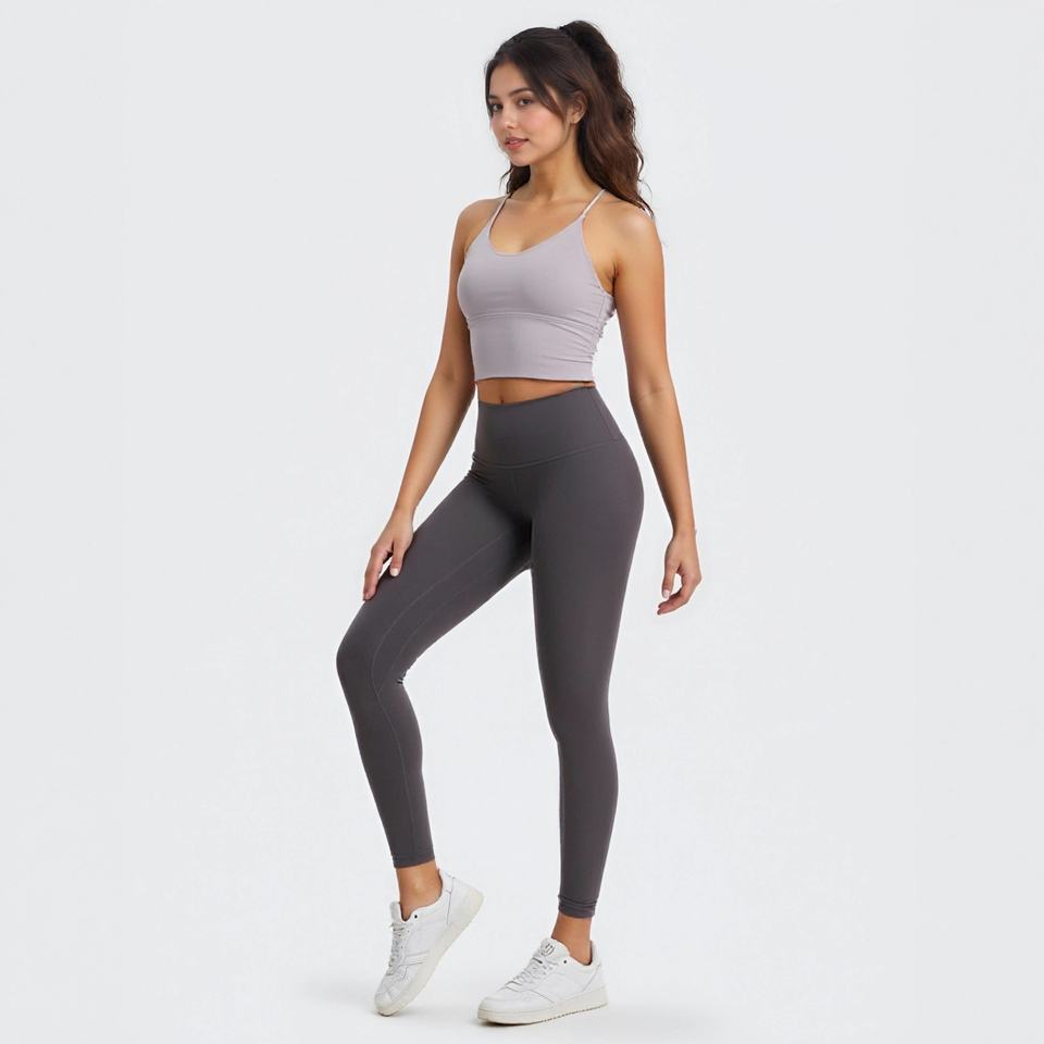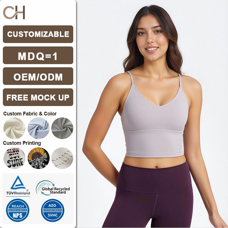 เสื้อกล้ามผู้หญิงสไตล์ยุโรปอเมริกัน ผ้าสองด้านเนื้อนุ่ม เซ็กซี่ สายเดี่ยวแบบสปอร์ตบรา สัมผัสนุ่มสบาย เหมาะสำหรับโยคะและฟิตเนส