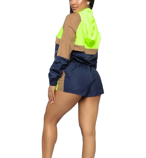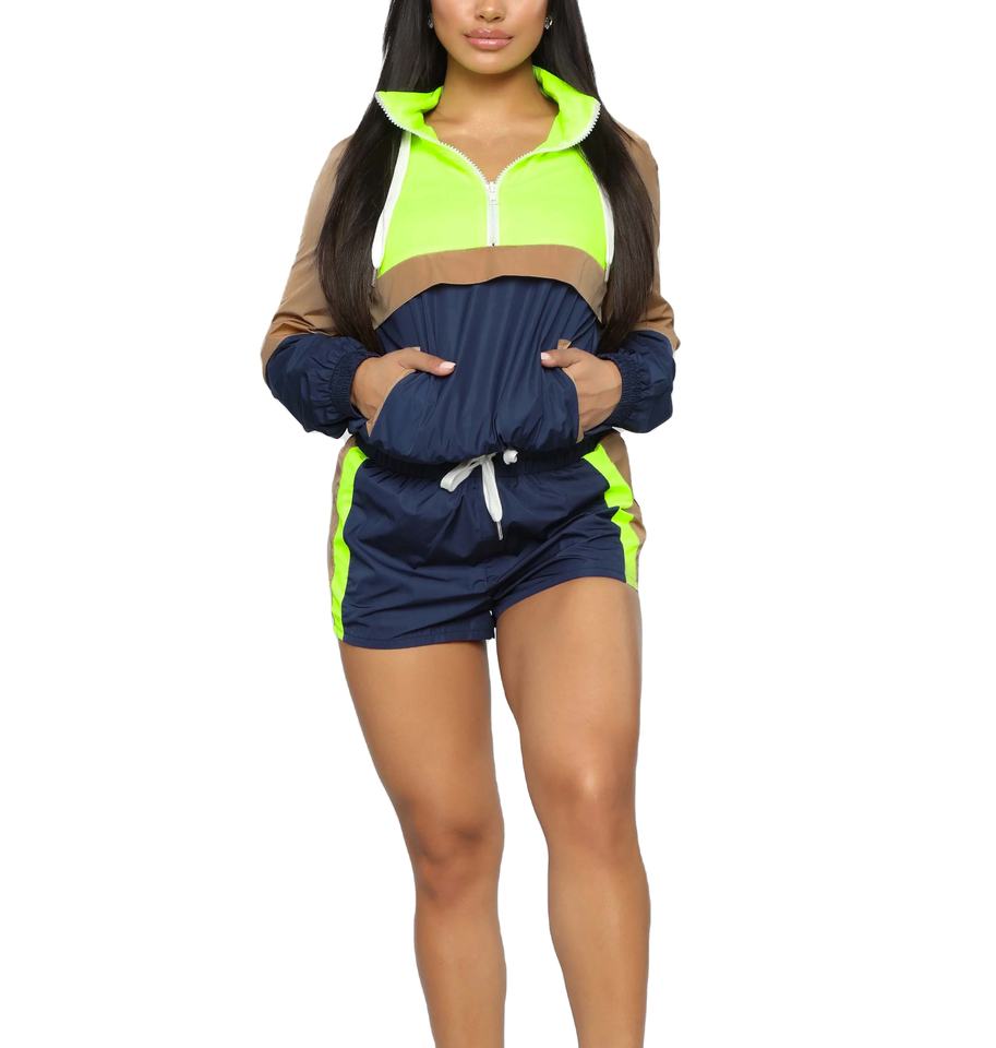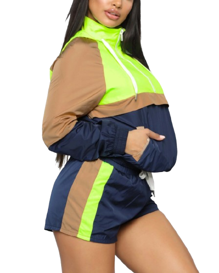 ชุดเซ็ตสองชิ้นสำหรับผู้หญิง ฤดูใบไม้ผลิ/ฤดูร้อน กันลม ผ้าฝ้าย 100% เสื้อแจ็คเก็ตกันลม ความยาวเหนือเข่า กางเกงขาสั้นสีพื้น ซิปครึ่งตัว ระบายอากาศได้ดี เป็นมิตรต่อสิ่งแวดล้อม