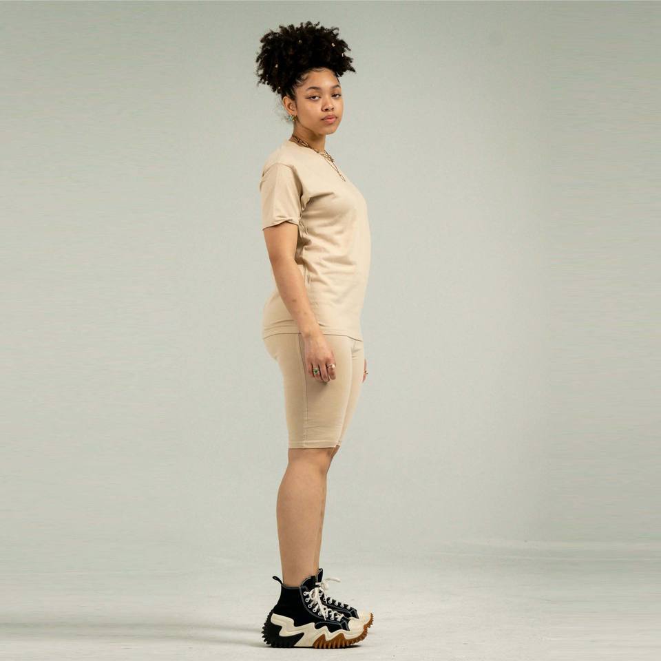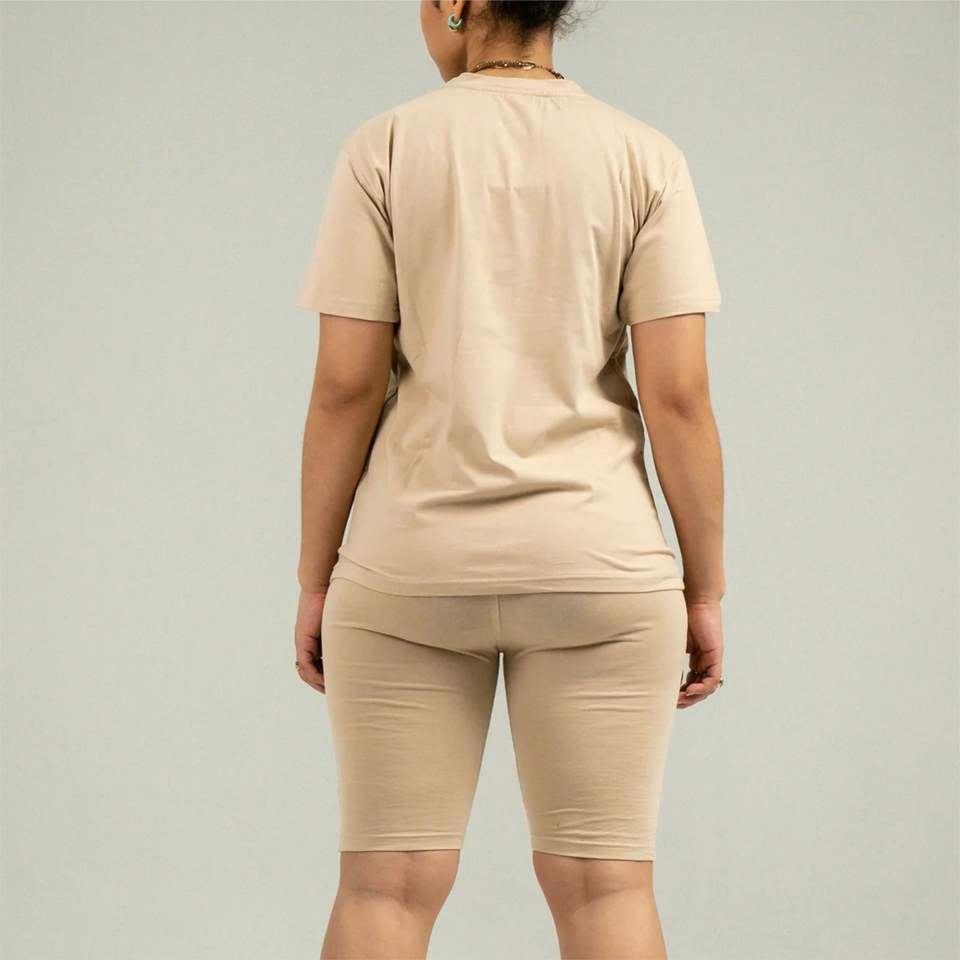 กางเกงขาสั้นนักขี่จักรยานและเสื้อยืดเข้าชุดแบบสองชิ้นสำหรับผู้หญิง-เหมาะสำหรับชุดลำลองออกกำลังกายและกิจกรรมกลางแจ้ง
