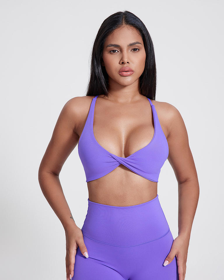 เสื้อชั้นในคอวีแบบไขว้ของผู้หญิงเสื้อออกกำลังกายแบบยืดได้4ทางระบายอากาศได้ดีแห้งเร็วดีไซน์ด้านหน้า