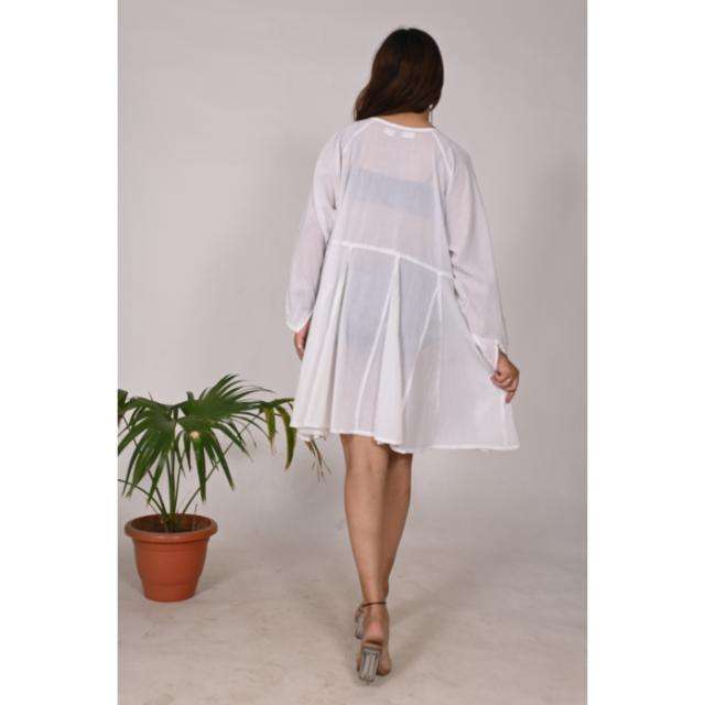 เดรสสั้นสไตล์โบโฮสำหรับผู้หญิงชุดเดรสสั้นสีขาวน้ำหนักเบาทำจากผ้าฝ้ายแท้เสื้อคลุมลายพื้นนุ่มสำหรับใส่ไปงานปาร์ตี้และชุดชายหาดลำลอง