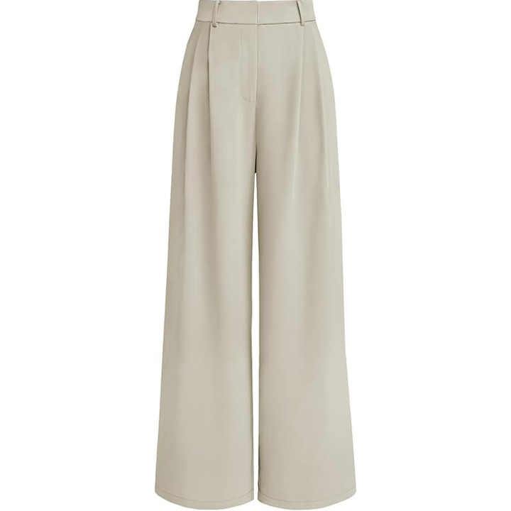 ชุดเดรสขาบานเอวสูงสำหรับผู้หญิงกางเกงหลวมลำลองทำงานธุรกิจ