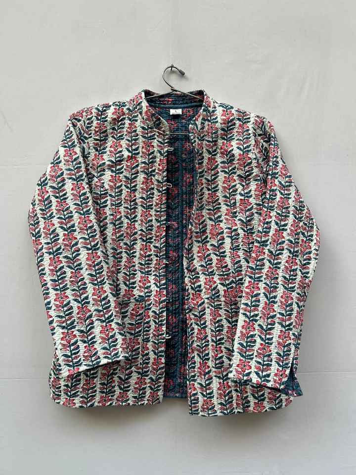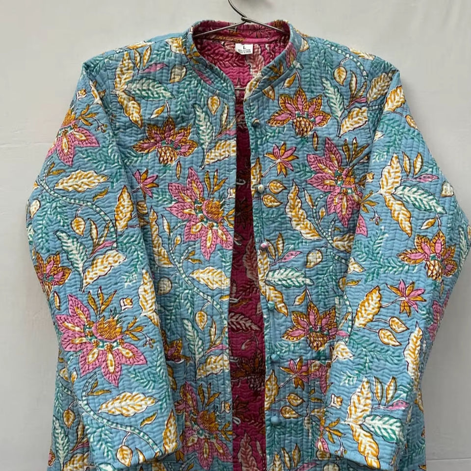 เสื้อแจ็คเก็ตผ้าฝ้ายพิมพ์ลายดอกไม้สำหรับผู้หญิง ระบายอากาศได้ดี เป็นมิตรกับสิ่งแวดล้อม เสื้อโค้ทฤดูหนาวตกแต่งกระดุม แบบปกติ สไตล์กันตะ