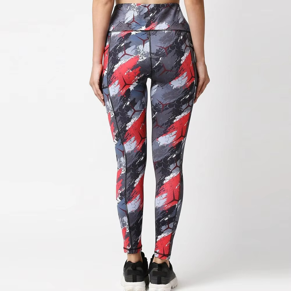กางเกงเลกกิ้งโยคะสตรีพิมพ์ลายดอกไม้เอวสูงยืดออกกำลังกายฟิตเนสกางเกงฝึกซ้อม