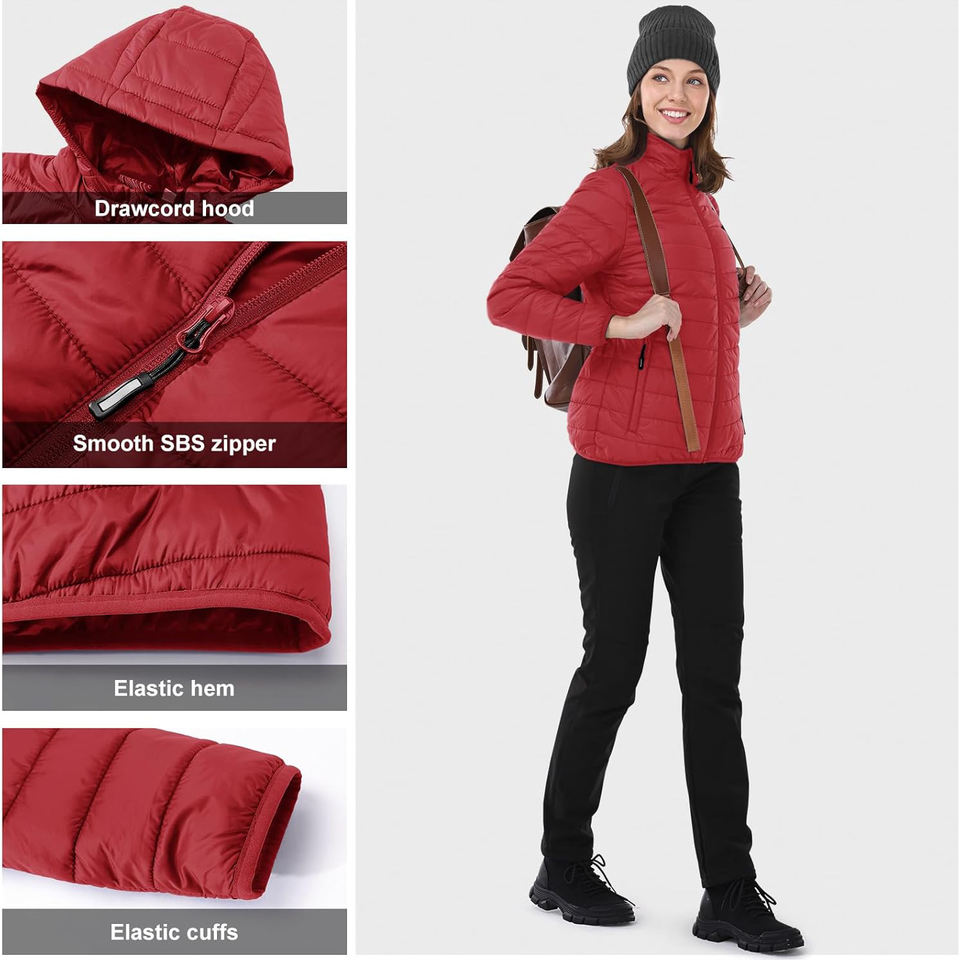 Womens sustainable packable cropped puffer jacket lightweight stylish warm eco friendly outerwear winter 2025
