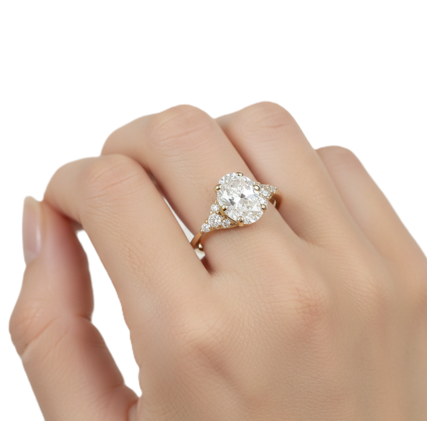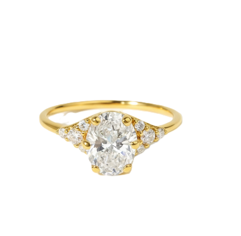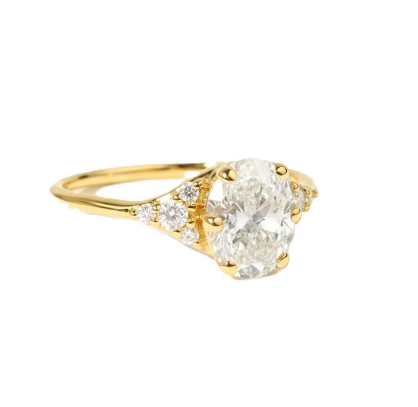 แหวนทรงวงรีเจียระไนเหลี่ยมเพชรสวยงาม