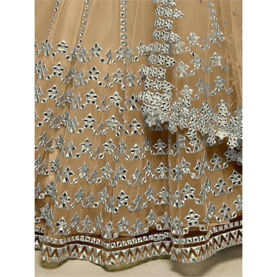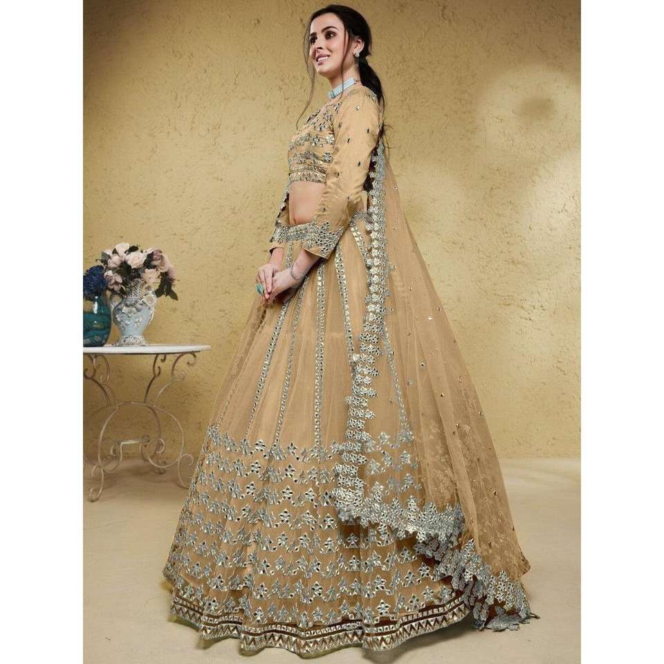 ชุดตาข่ายฟอยล์สีเบจสำหรับใส่ทำงานปาร์ตี้ lehenga choli กับ dupatta