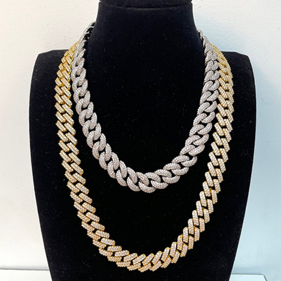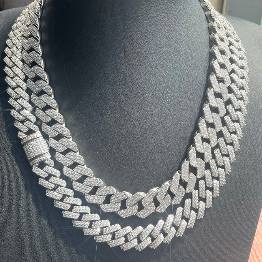 เครื่องประดับเงินแท้ 925 ดีไซน์สวยงาม ประดับเพชรโมอิสซาไนต์ ขนาด 13 มม. 15 มม. 18 มม. สไตล์ฮิปฮอปแบบคิวบันลิงค์ 2 แถว