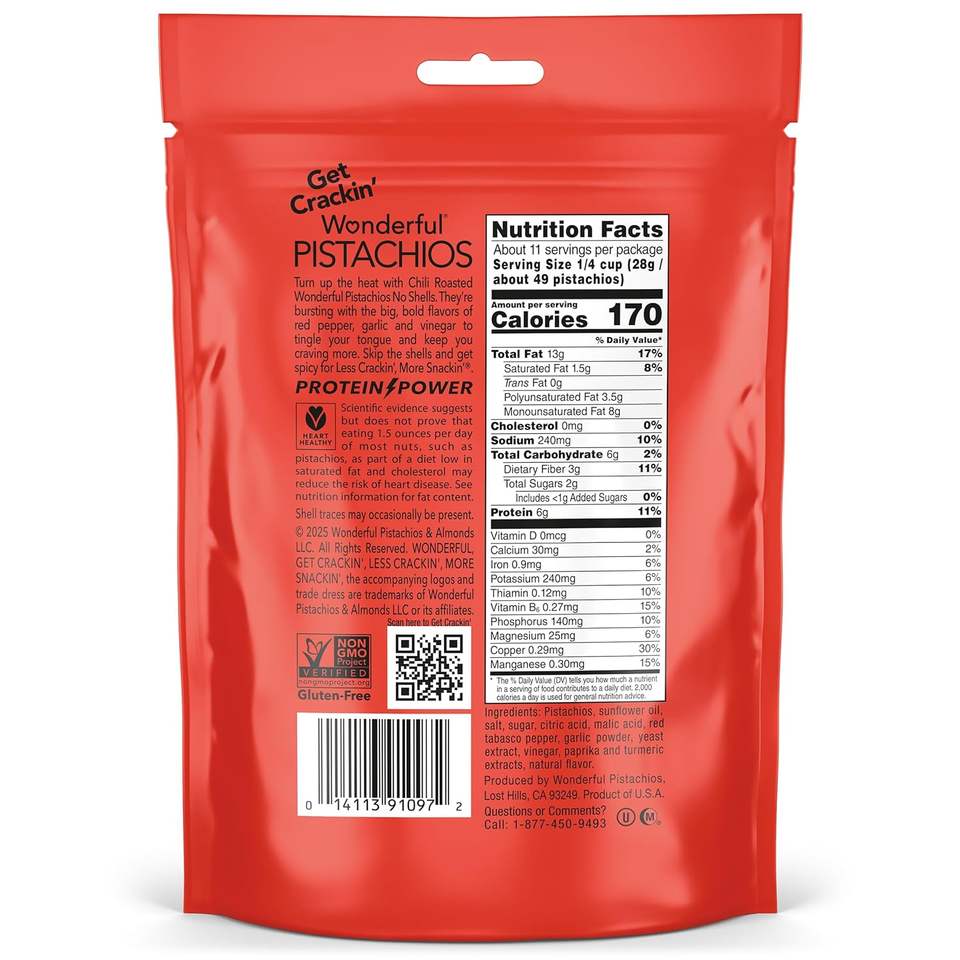 พิสตาชิโอคุณภาพเยี่ยมแบบไม่มีเปลือก รสพริกคั่ว น้ำหนัก 11 ออนซ์