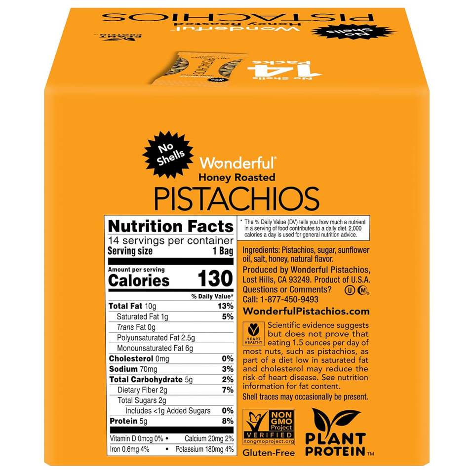 พิสตาชิโอคุณภาพเยี่ยมแบบไม่มีเปลือก อบน้ำผึ้ง ขนาด 0.75 ออนซ์ (แพ็ค 14 ถุง)