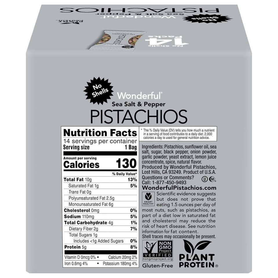 พิสตาชิโอไร้เปลือก รสเกลือทะเลและพริกไทย ขนาด 0.75 ออนซ์ (แพ็ค 14 ถุง)