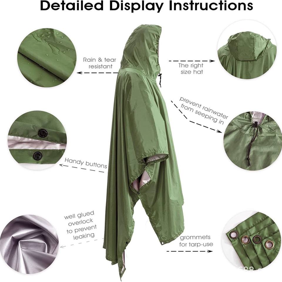 เสื้อกันฝนแบบมีฮู้ดน้ำหนักเบาสีเขียว คุณภาพเยี่ยม กันน้ำได้ เหมาะสำหรับทุกเพศ ใช้สำหรับตั้งแคมป์ เดินป่า และกิจกรรมกลางแจ้งอื่นๆ